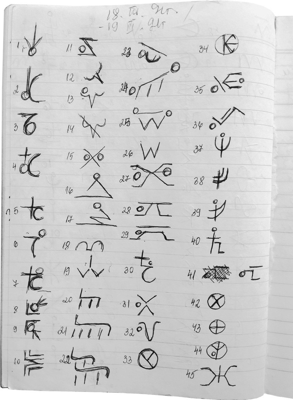 Първо започнах да правя рисунки, а с тях постепенно се появиха и текстовете. Особеното в първата серия знаци беше, че до всеки от тях имаше малка цифра. Последва една история за дървен кораб, с който хората дошли да заживеят на Земята. След това започна да тече текстът, който записвах в тетрадките. Някои страници бяха запълнени само с думи и изречения. При други отляво имаше поле с рисунки и после следваха йероглифните знаци, често съчетани с формули. И така ден след ден, докато към края страниците надхвърлиха хиляда. Всяка една тетрадка, както обясних по-рано, се прибираше и завеждаше в секретната секция на Генералния щаб. Когато попитахме Учителите защо текстовете съчетават знаци от различни писмености, ни обясниха, че се преминава през различен начин на приемане и предаване на информацията, характерен за различните писмености. Това е трептене и докато ръката ми усвоява приемането на информацията чрез един вид писмо, то ще преминава през различни, условно казано, шрифтове. По-късно, покрай затварянето на обекта, генерал Динев изиска експертиза от Института по графология, за да се вземе отговорно решение дали има смисъл да се работи върху разчитането на текстовете. Експертизата доказа, че това е писмо в развитие, което се променя в процеса на работата; че носи информация и че е почерк на един и същ човек.