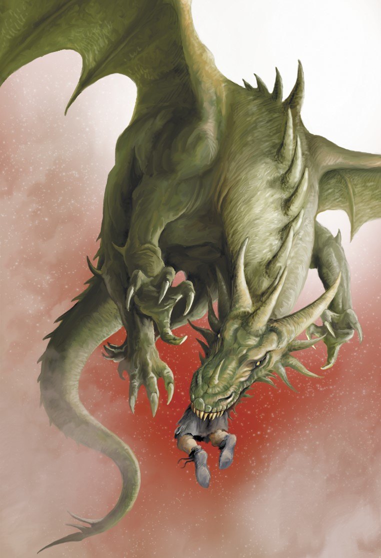 Драконът стрелна глава, загреба брат си с челюсти, подметна го във въздуха, зина да го улови с чутовната си паст и го глътна.