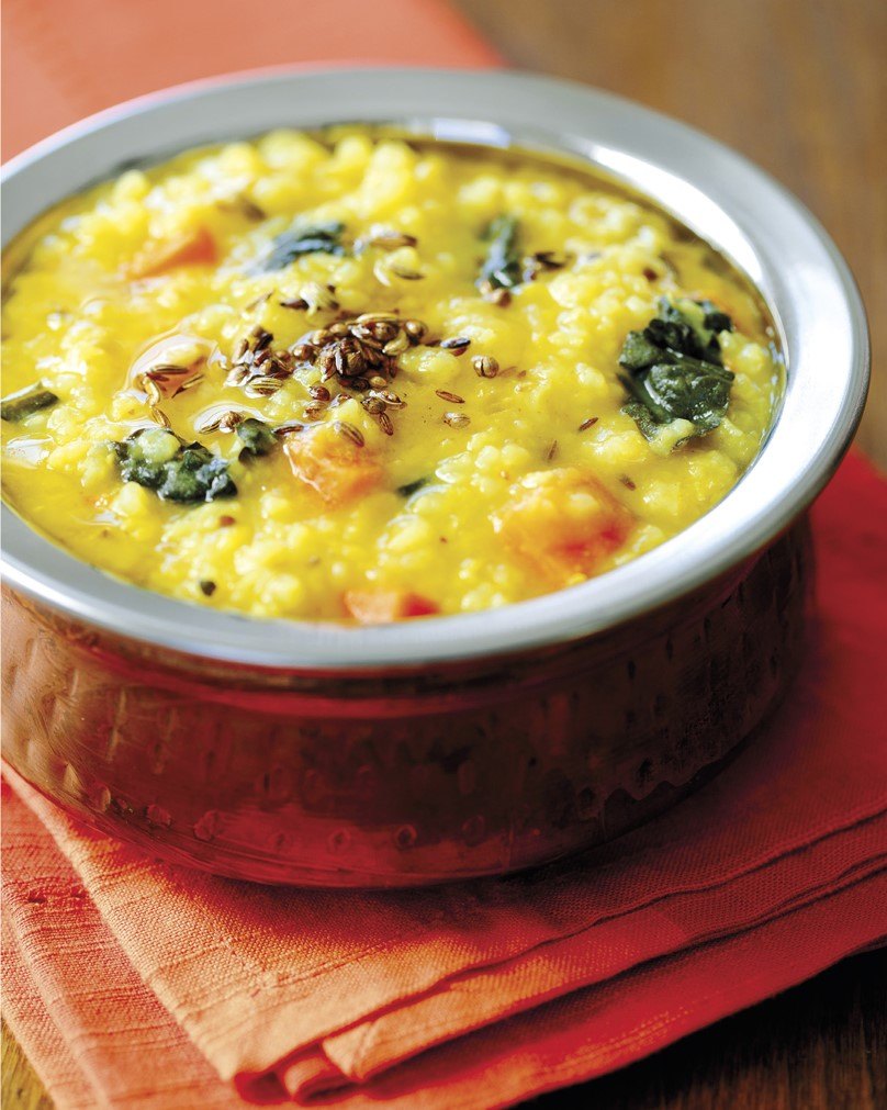 Това класическо ястие има заземяващ и успокояващ ефект, като в същото време дава устойчива енергия. Към охлаждащите билки и подправки аз добавям здравословната горчивина на зелените листа, за да смекча менталната жега на натовареното ежедневие. Усетите ли как умът ви се щура около купища задачи и ангажименти, веднага се спрете и отделете малко време за купичка вкусно кичари. Уверявам ви, че веднага ще се почувствате по-спокойни.
