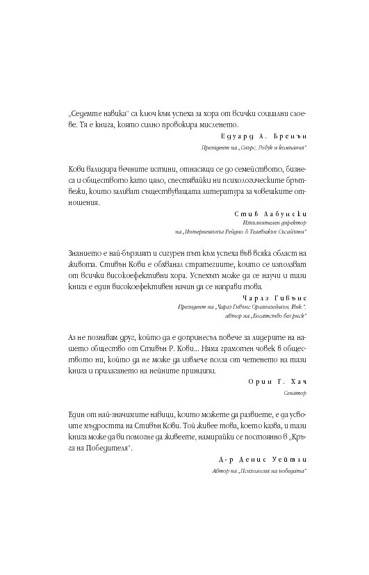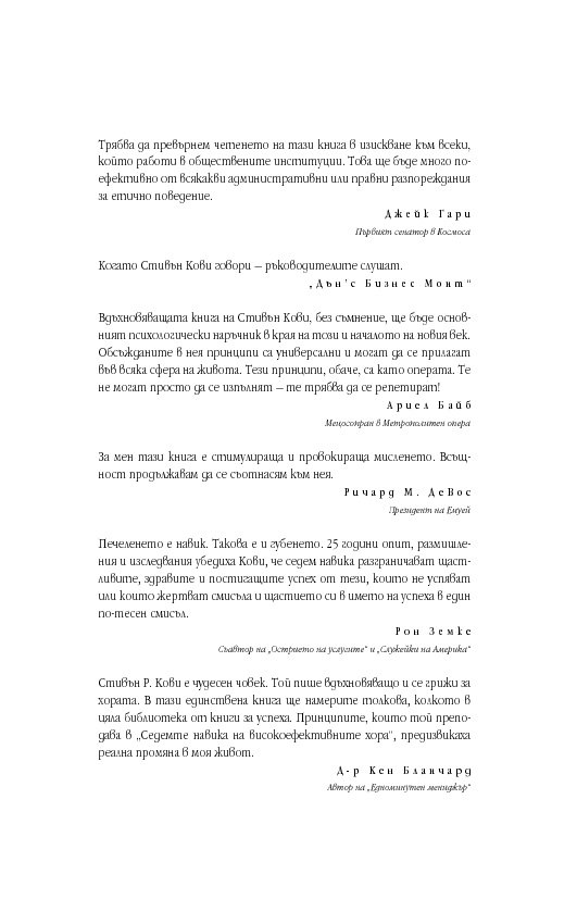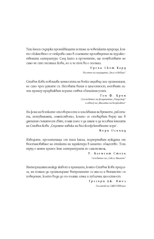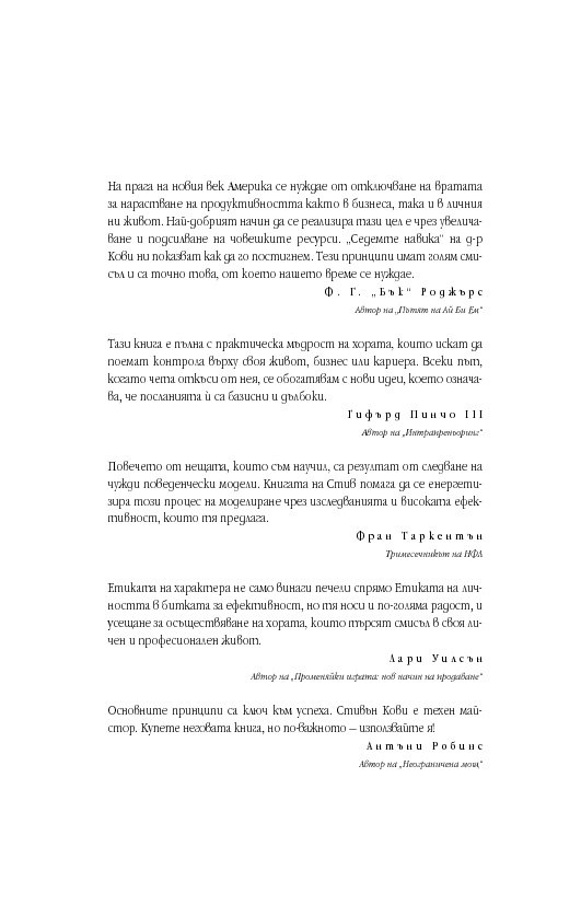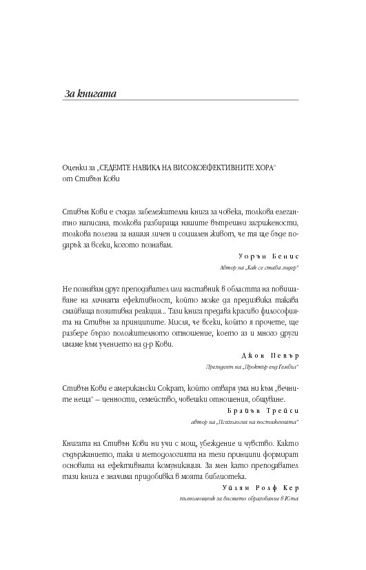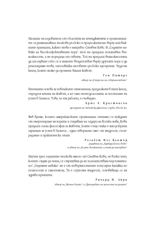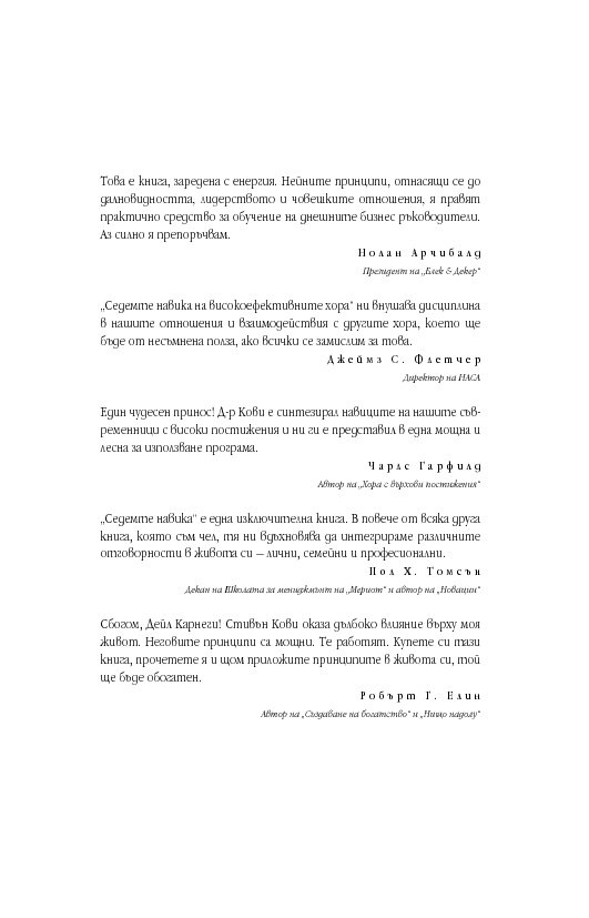 Уроците от тази книга са също толкова значими днес, както и преди 25 години, ако не и повече. „Седемте навика“ продължава да бъде книга, която трябва да се чете и препрочита.