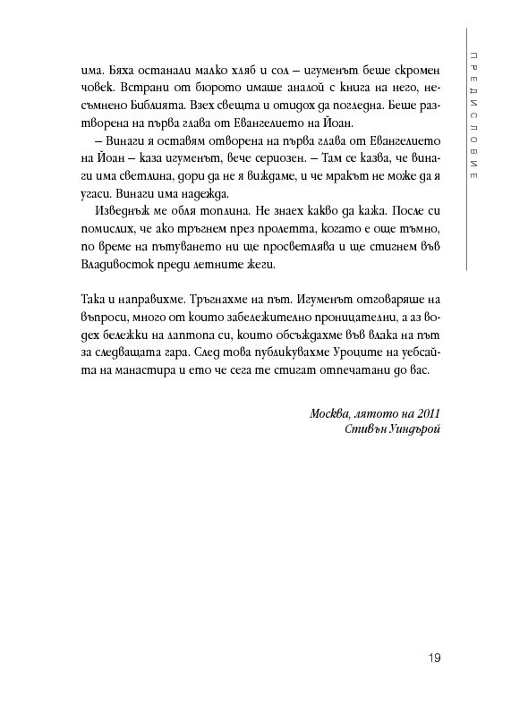 Написана от професионален съветник и консултант, базираща се на професионалния и личен опит на цял един живот, историята е вградена в авантюристичното пътуване на игумен на сибирски манастир, придружаван от млад британски учен. Техните характери се разкриват и развиват пред очите ни, успоредно с Уроците.