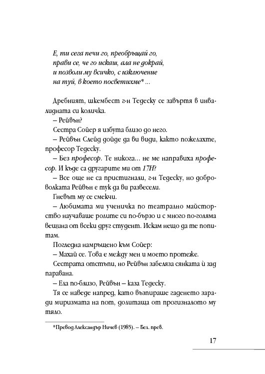 Това е книга за изборите, които правим, след като съдбата ни е определила за жертви – какъв е шансът да бъдем достойни човешки същества, когато сме изгубили почти всичко: миналото си, бъдещето си, включително и личността си.
