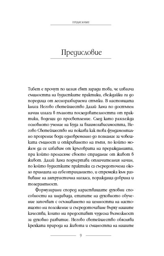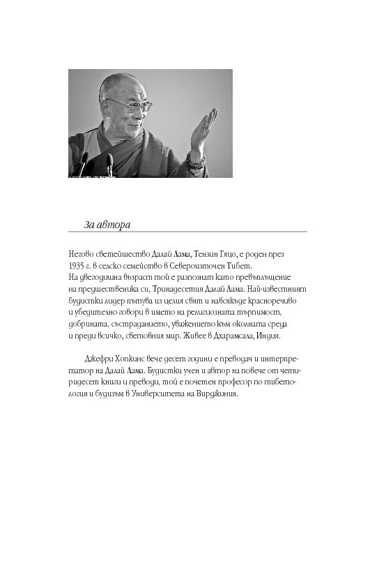 Забележителна и вдъхновяваща книга за хора от всякакви вероизповедания. Независимо от своето ниво на духовното развитие, читателите ще бъдат запленени от изпълнените с любов и прямота думи на Далай Лама.
