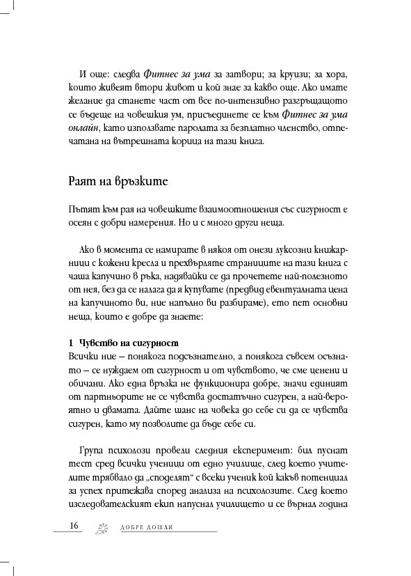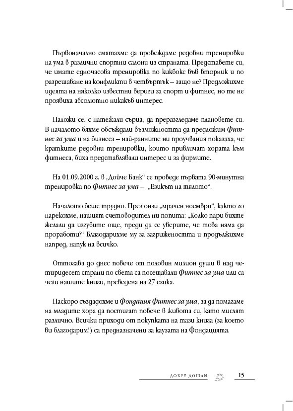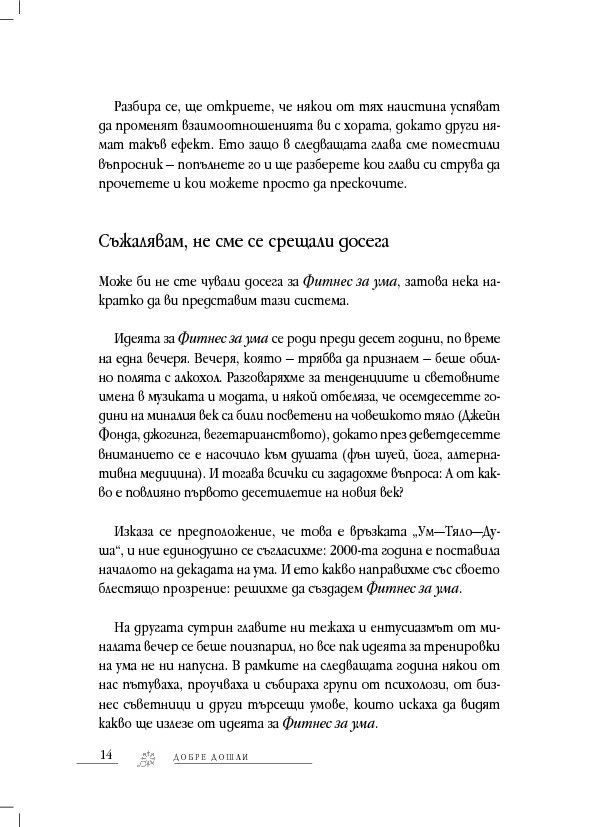 „Притежавате здрав разум? Искате още? Присъединете се към Фитнес за ума.“