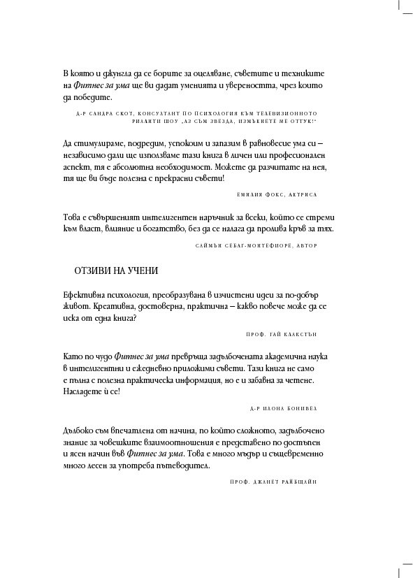 „Ако говорим за усъвършенстване на умовете ни, Фитнес за ума е марка №1 – може напълно да й се доверите и дори да се влюбите в нея.“