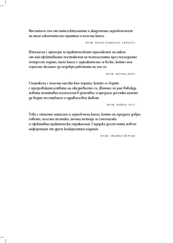 „Ефективна психология, преобразувана в изчистени идеи за по-добър живот. Креативна, достоверна, практична – какво повече може да се иска от една книга?“