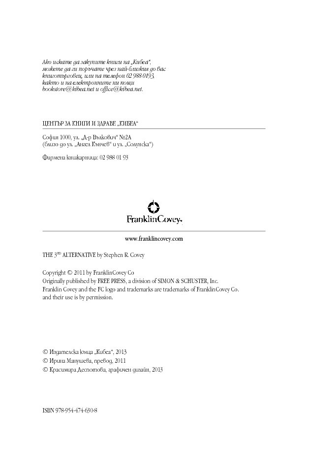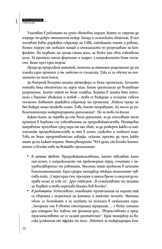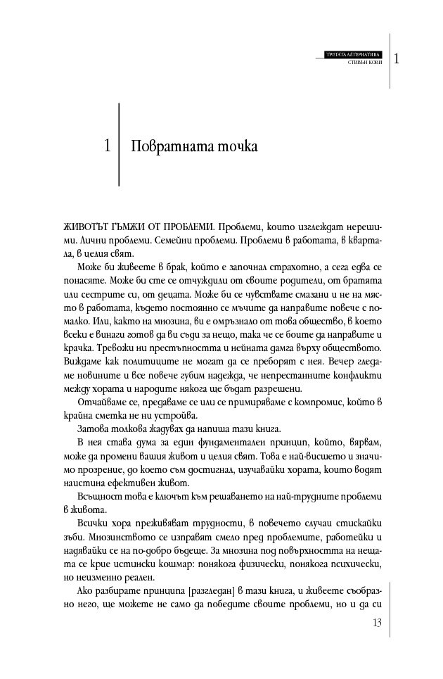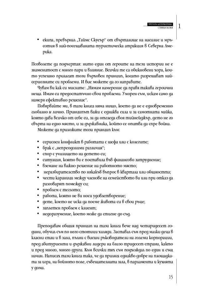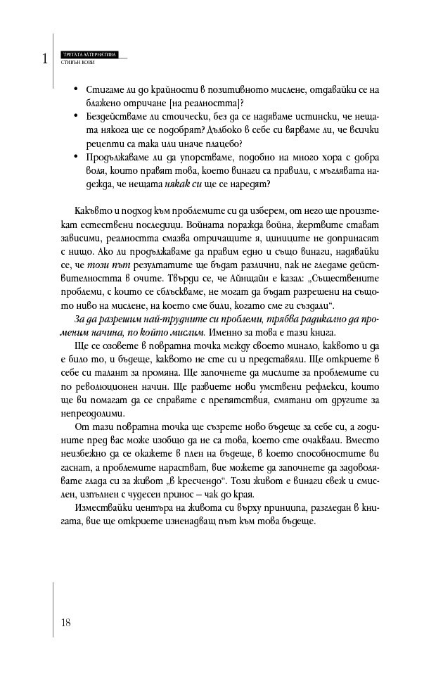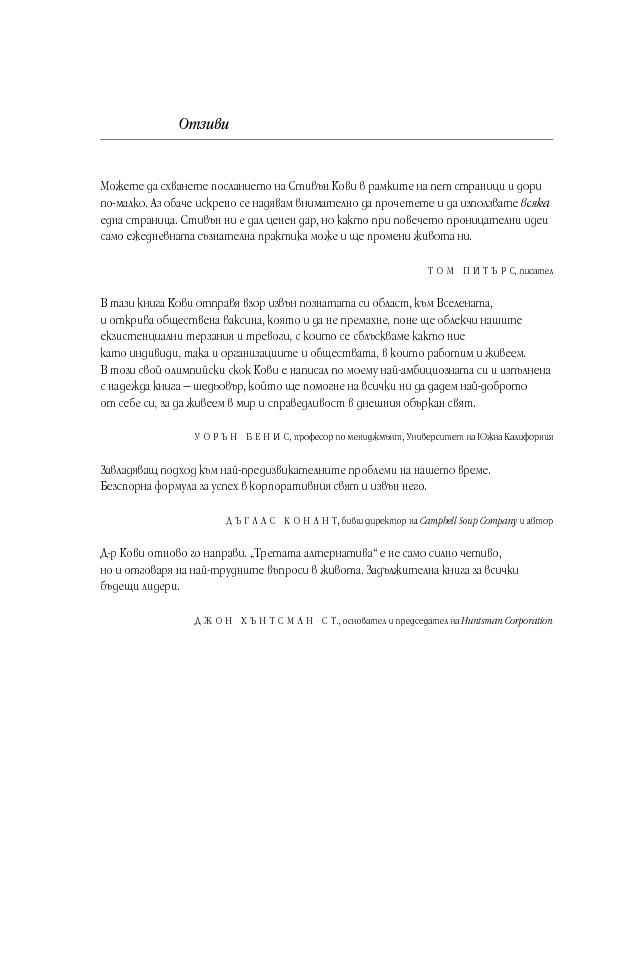 „Д-р Кови отново го направи. „Третата алтернатива“ е не само силно четиво, но и отговаря на най-трудните въпроси в живота. Задължителна книга за всички бъдещи лидери.“