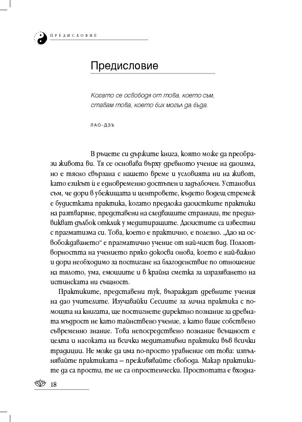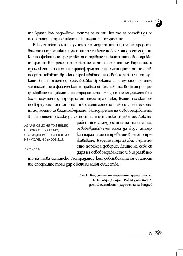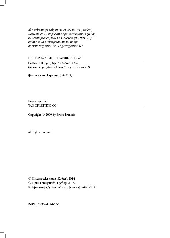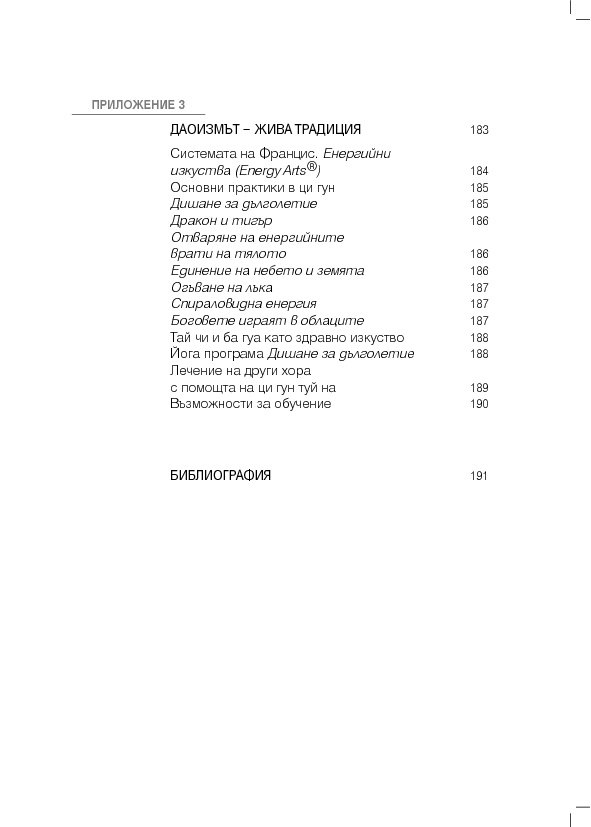 Със своя земен и разбираем стил Брус Францис ни предлага могъщи методи за освобождаване от напрежението, страха, гнева и болката. Можете да се научите да работите със своята ци – вътрешната жизнена сила – не само за да подобрите здравето си и да успокоите ума си, но и за да постигнете истинско щастие и да пробудите големия си духовен потенциал.