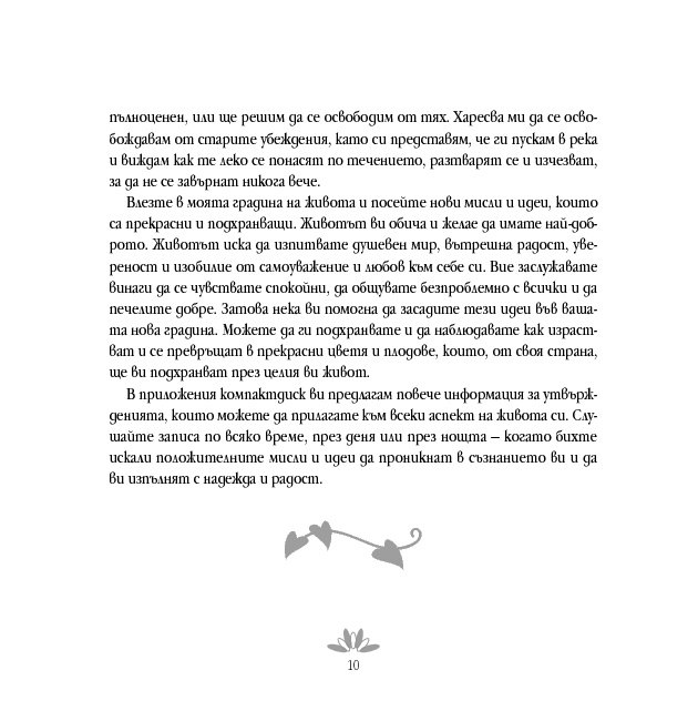 В приложения компактдиск Луиз Хей предоставя полезна информация за утвържденията. Записът може да бъде слушан по всяко време на денонощието – винаги когато бихме искали положителните мисли и идеи да проникнат в съзнанието ни и да ни изпълнят с надежда и радост.