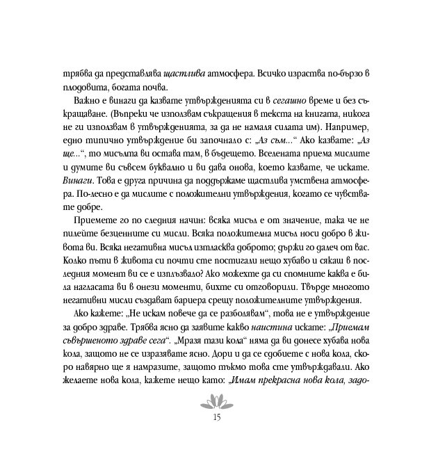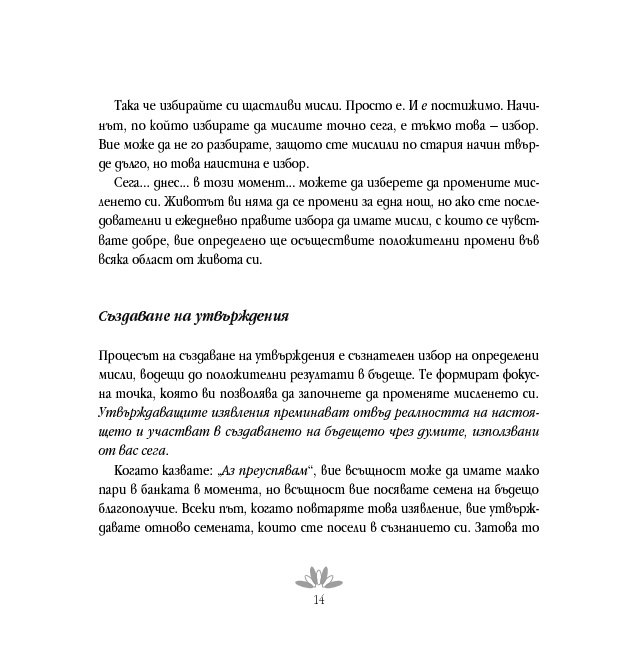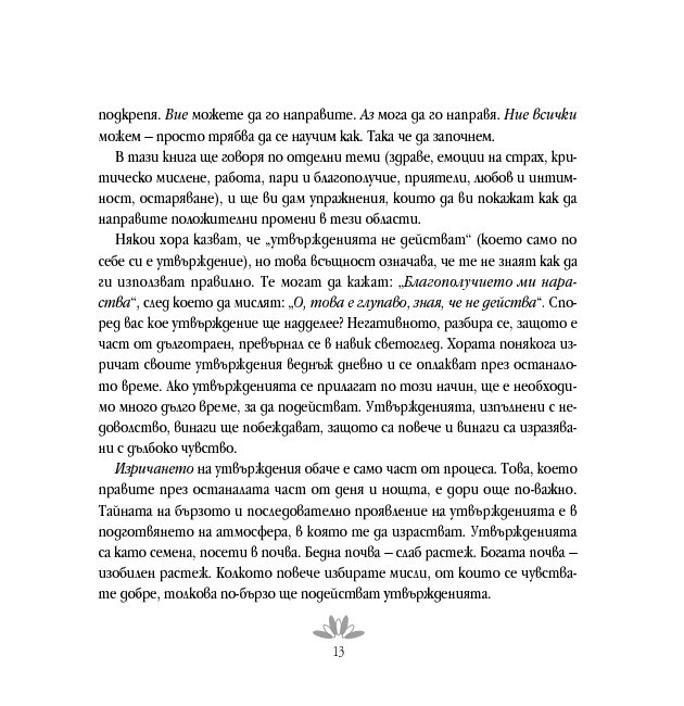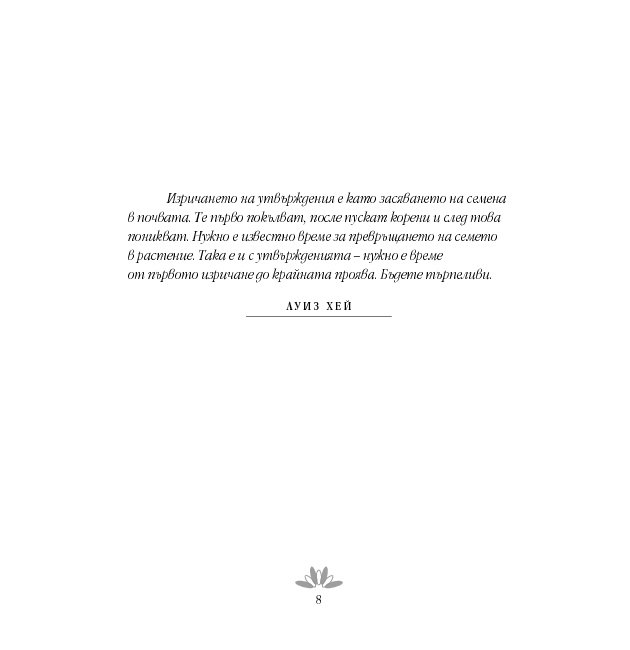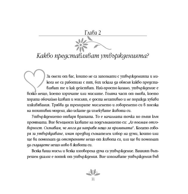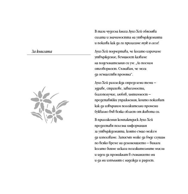 Луиз Хей обяснява силата и значимостта на утвържденията и показва как да ги прилагаме тук и сега и подчертава, че когато изричаме утвърждение, всъщност казваме на подсъзнателния си ум: „Аз поемам отговорност. Съзнавам, че мога да осъществя промяна“. Тя разглежда здравето, страховете, зависимостите, благополучието, любовта, интимността и представя упражнения, които показват как да извършим положителни промени буквално във всяка област от живота си.