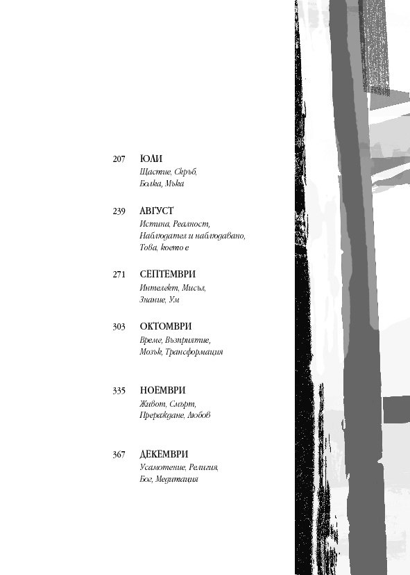 365 медитации върху свободата, личната трансформация, пълноценния живот и още много други теми, споделени от човека, когото Далай Лама определя като „един от най-великите мислители на нашето време“.