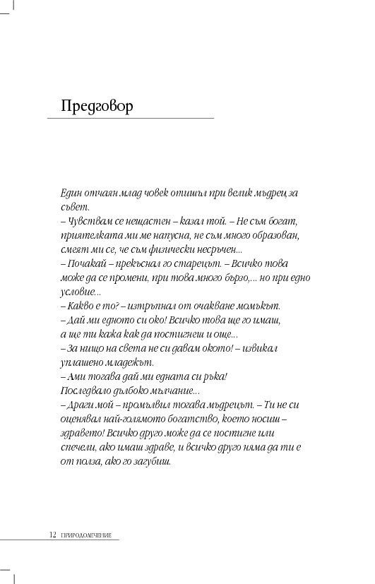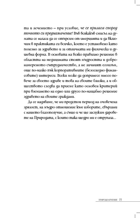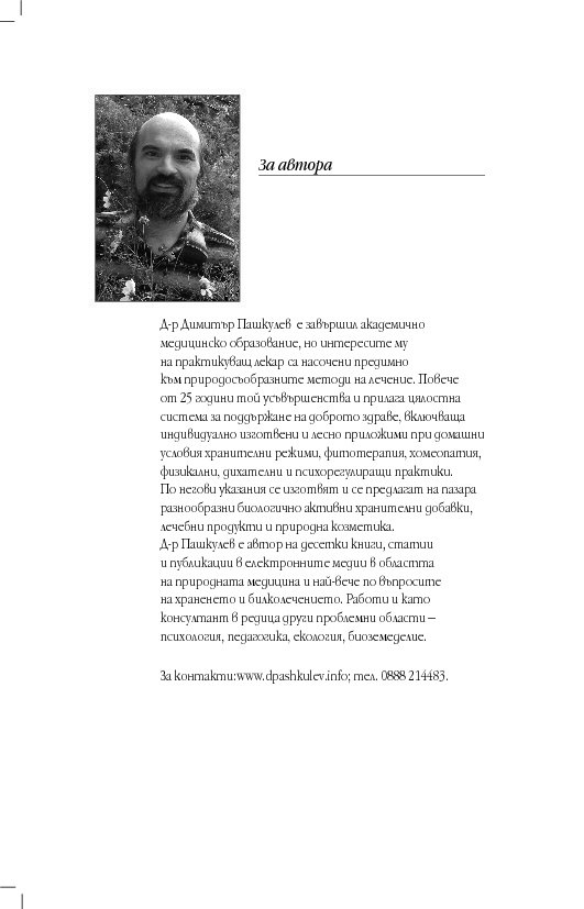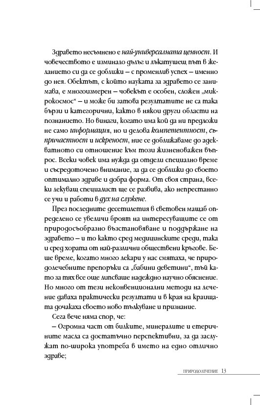 „Енциклопедичните познания на автора далеч надхвърлят рамките на традиционните медицински науки. Съчетанието между натрупания дългогодишен и широк практически опит в работата му с пациенти и прилагането на интегралния подход в природната медицина му е позволило да създаде един наистина стойностен справочник с изключително полезна информация за всекиго.