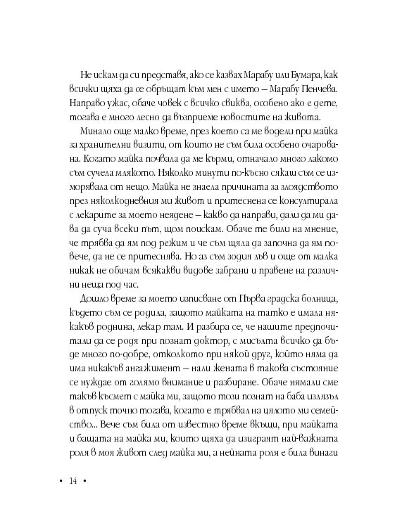 Разказът е мозайка от епизоди, наблюдения, възприятия и обобщения, оставили отпечатък у човек, който по обективни причини гледа на света и хората от друг ъгъл. Като се почне от детското „Не можех да разбера защо…“ (не ме водят …, не ме канят на…, с какво ги бях обидила…) през претръпналия коментар за лекарската грешка на калпавия доктор по време на раждането й. И напук на всичко днес тя участва в театрални постановки, наваксва с ученето, написала е (засега една) книга и много стихотворения. Всекидневно преодоляване на проблеми, немислими за нас, хората, които имаме много повече от ляв палец.