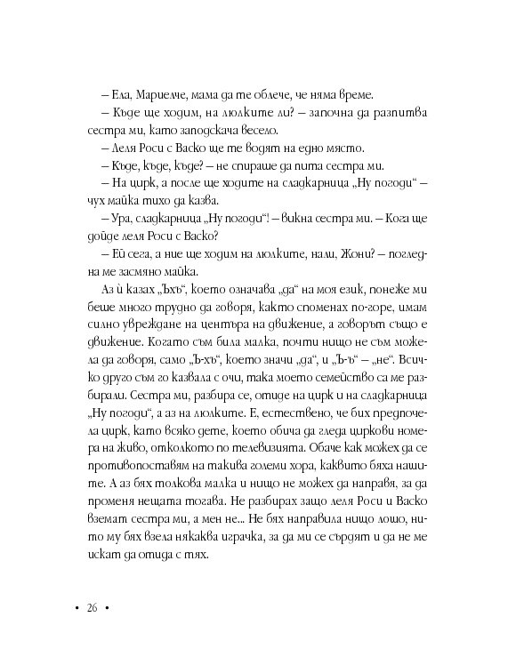 Анжела е с дух на борец, не спестява нищо на никого, иска да бъде чута, разбрана и най-вече – обичана. Книгата й е непретенциозна, наивна, трогателна изповед, която цели да насочи прожектора към ежедневието на хора с подобно (и не само) страдание.
