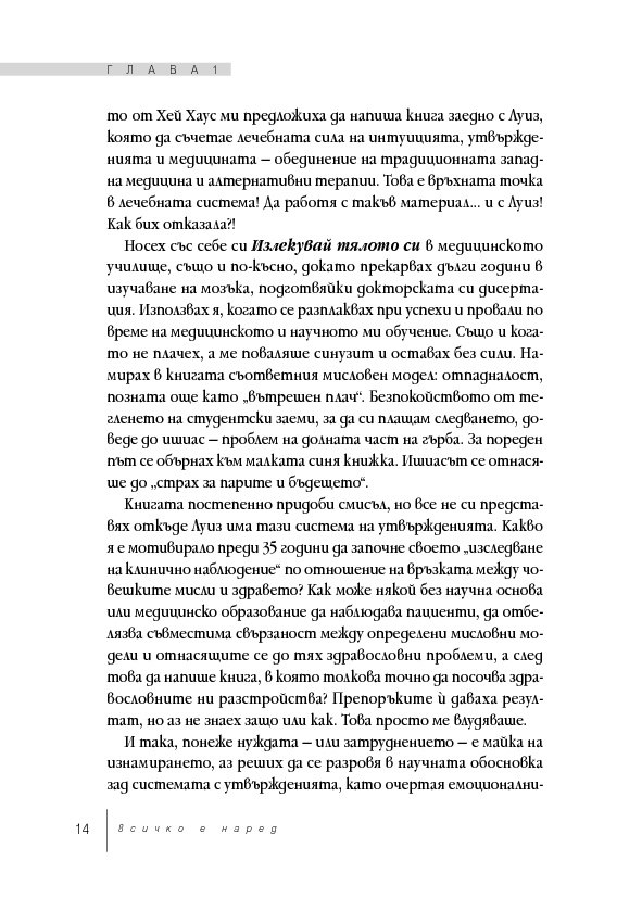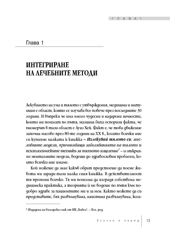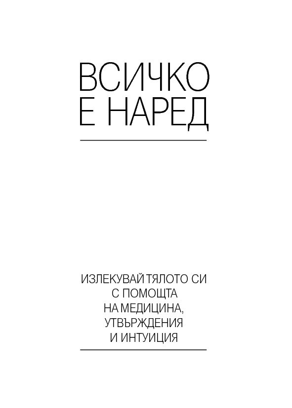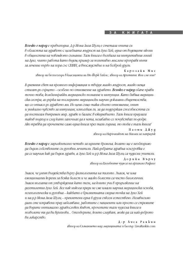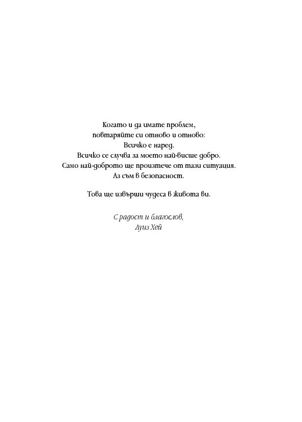 • се възползвате от утвържденията, интуицията си и най-новите медицински факти, за да постигнете оптимално здраве и благополучие, както и цялостното разбиране, че всичко е наред.