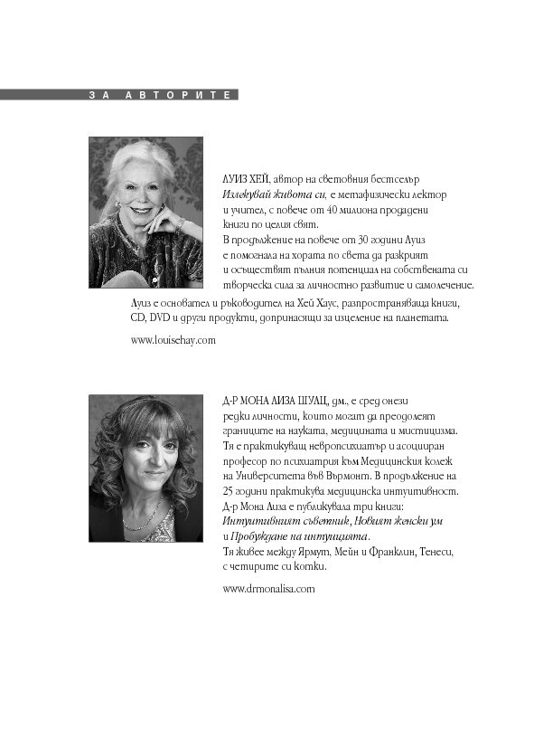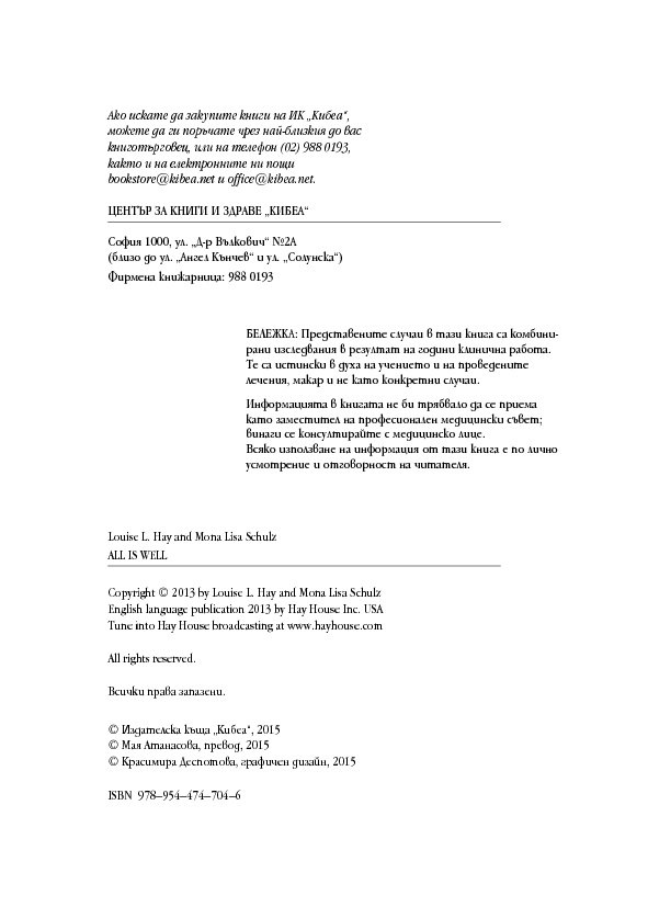 Във „Всичко е наред“ Мона Лиза Шулц, лекар и интуитивен лечител, заедно с Луиз Хей, изследват практиката на утвържденията и ви показват как да: