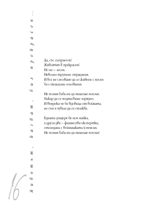 В „базата данни“ няма развихреност на чувствата, но има посята буря, предизвикателство към интелекта, широта на кройката и много други параметри, на пръв поглед извън поетичната настройка на човешката душа.