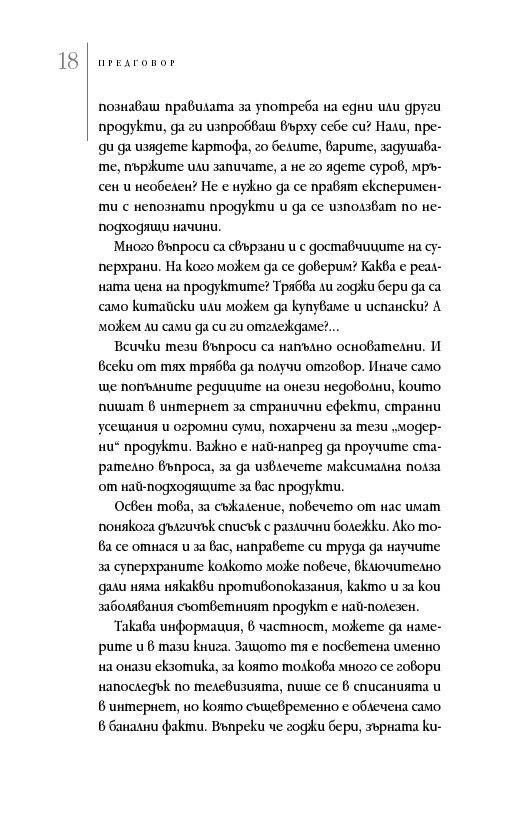 В книгата се предлагат не само подробни описания на тези уникални продукти, но и съвети как да се ориентираме на пазара, за да изберем най-доброто качество, как да различаваме имитациите, как правилно да ги приготвяме и в какви кулинарни комбинации можем да ги включваме.
