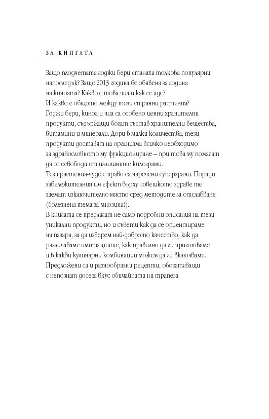 - Годжи бери, чиа и киноа – три суперхрани, изгубени за цели столетия в разломите на историята, днес отново се възраждат.