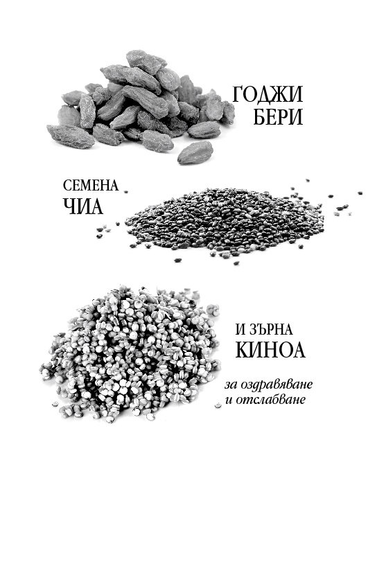 Годжи бери, киноа и чиа са особено ценни хранителни продукти, съдържащи богат състав хранителни вещества, витамини и минерали. Дори в малки количества, тези продукти доставят на организма всичко необходимо за здравословното му функциониране – при това му помагат да се освободи от излишните килограми.