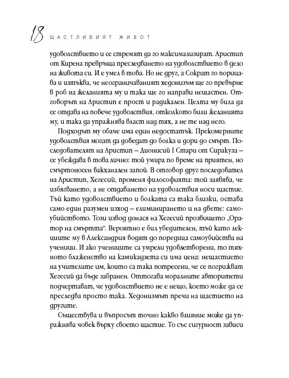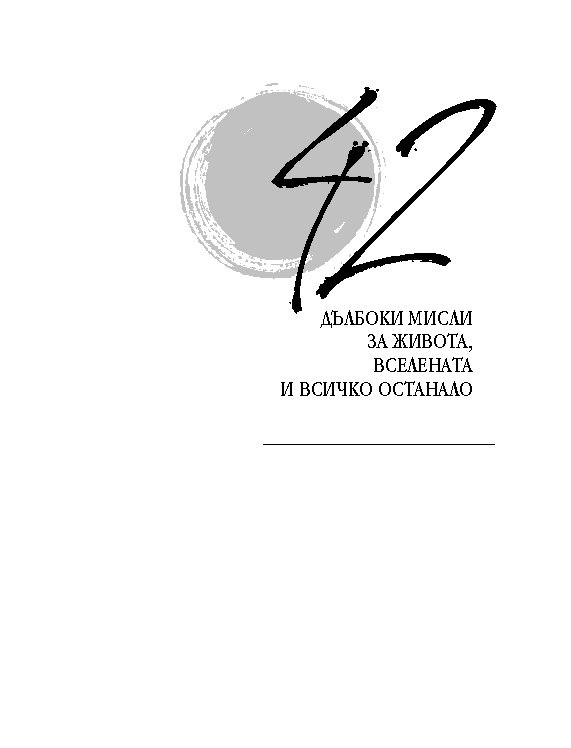 Четиридесет и две мъдри мисли, свързани с най-важните житейски въпроси. Цитирайки казаното от велики умове в човешката история, от Сократ до Монти Пайтън, Върнън търси отговори в сферата на професионалната изява, любовта, вечния живот, секса и щастието. Чрез афоризми, аналогии и анекдоти авторът ни дава възможност да открием приложението на философията в задачата да живеем пълноценно.