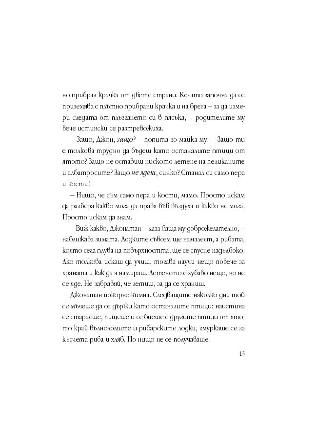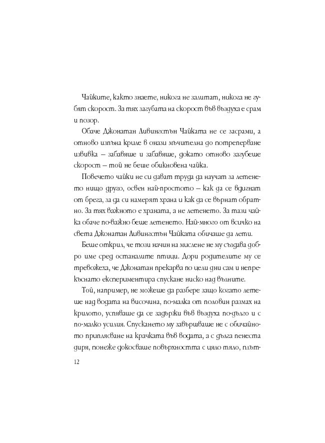 Препрочитах [тази глава] отново и отново. Не можеше да е вярно! Нима чайките, които бяха последвали Джонатан, щяха да убият духа на полета с ритуали?