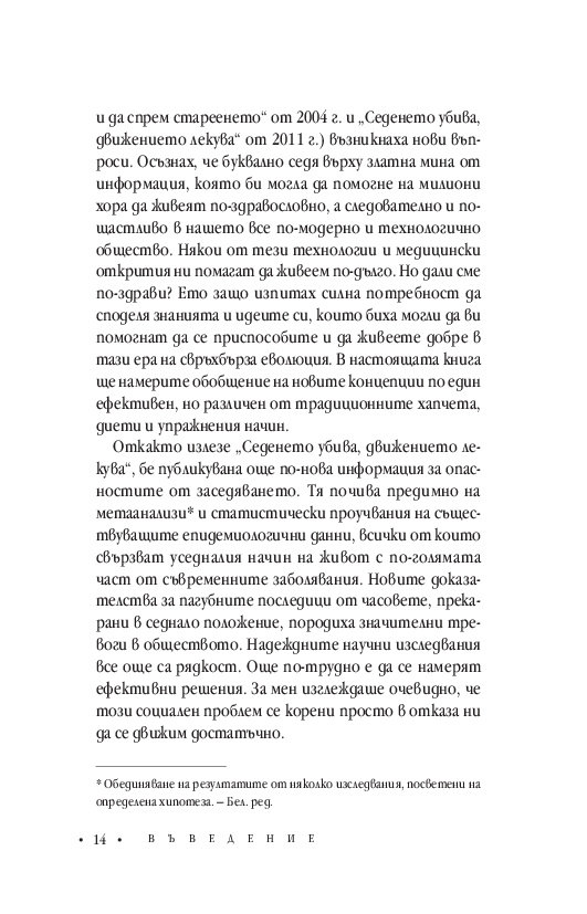 Направете гравитацията свой съюзник и приятел – съветва д-р Верникос. Което, преведено на практичен език, означава: просто променяйте седналото си положение на всеки 20–30 минути, ставайки прави за известно време. Звучи толкова елементарно, че е трудно да повярваш – но върши чудеса за здравето, настоява тя.