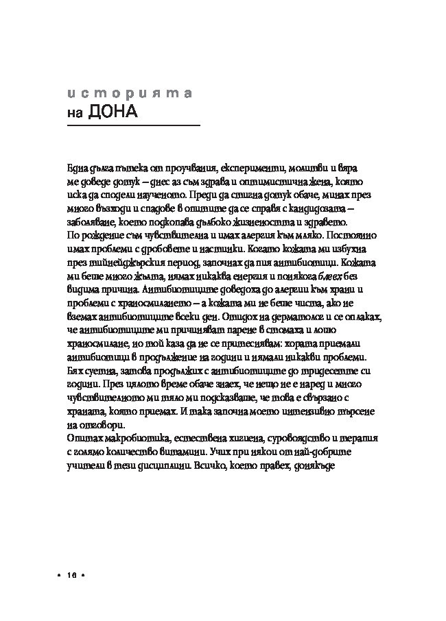 В Диетата за екологията на тялото Дона Гейтс връща кефира и другите естествено ферментирали храни „обратно на картата“. Задължително четиво за всички, които се борят с кандида и други храносмилателни проблеми.