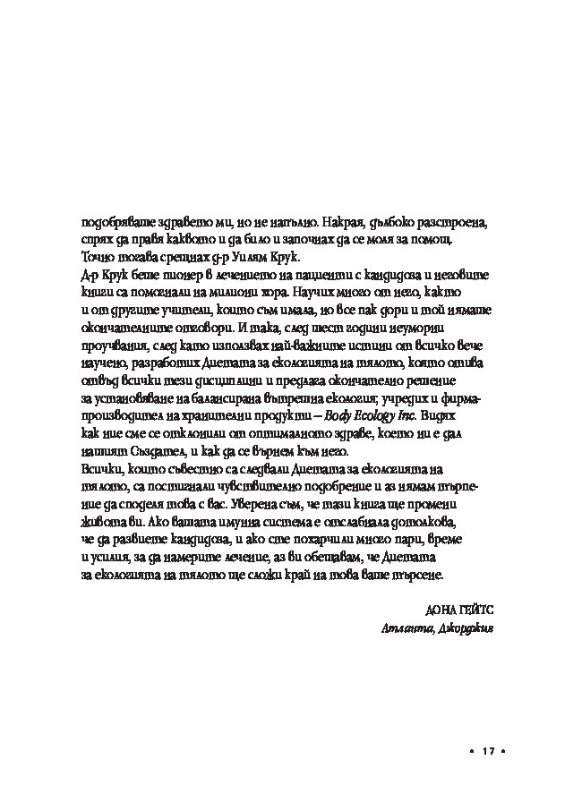 Никой друг досега не е успял да събере на едно място всичко, което трябва да знаем за възстановяването и стимулирането на имунитета. Тази книга е задължителна за всички мои пациенти с кандидоза, нарушения на имунната система и хранителни алергии.