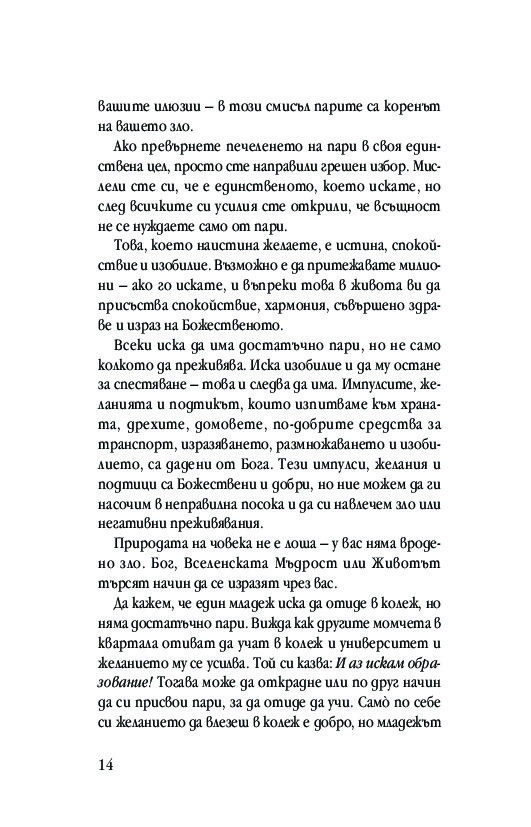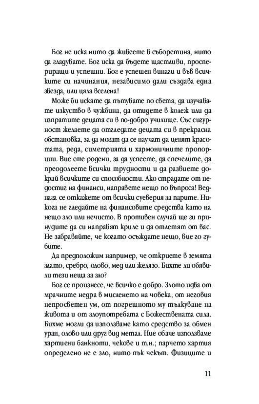 В бедността няма нищо добродетелно; тя е психично заболяване, което следва да бъде изличено от лицето на Земята. Вие сте тук, за да растете, да се разгръщате и да се развивате – духовно, умствено и материално. Вие имате неотменимото право да разгърнете докрай своя потенциал и да се изразявате по всички възможни начини. Трябва да се обградите с красота и лукс.
