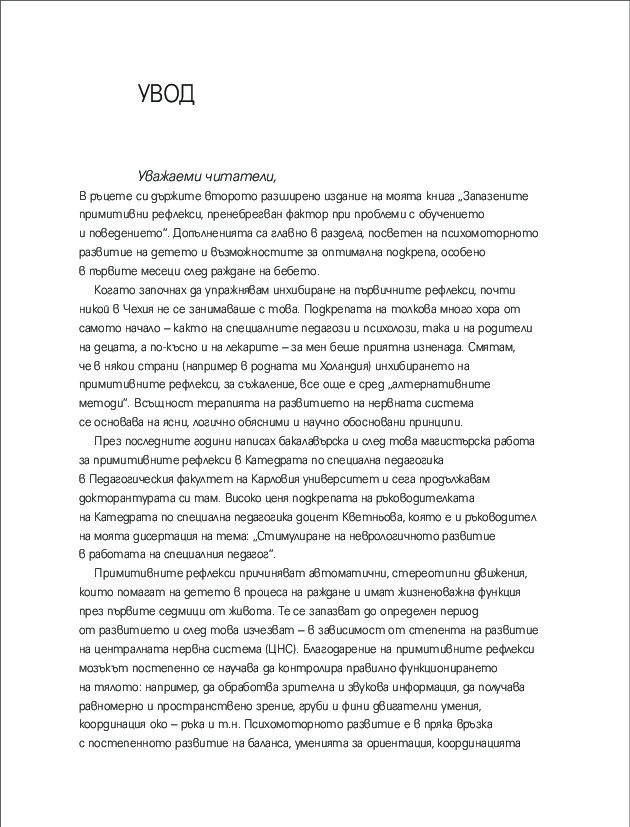 Уникалната публикация за запазените (персистиращи, продължаващи) рефлекси е предназначена за широк кръг читатели и особено за онези, които се стремят да разрешат причината за лавинообразните проблеми в обучението и поведението на днешните деца.