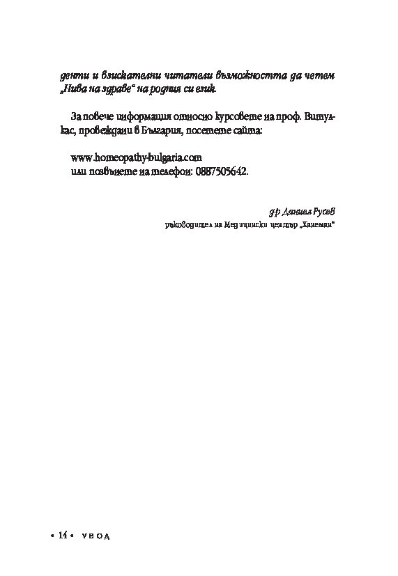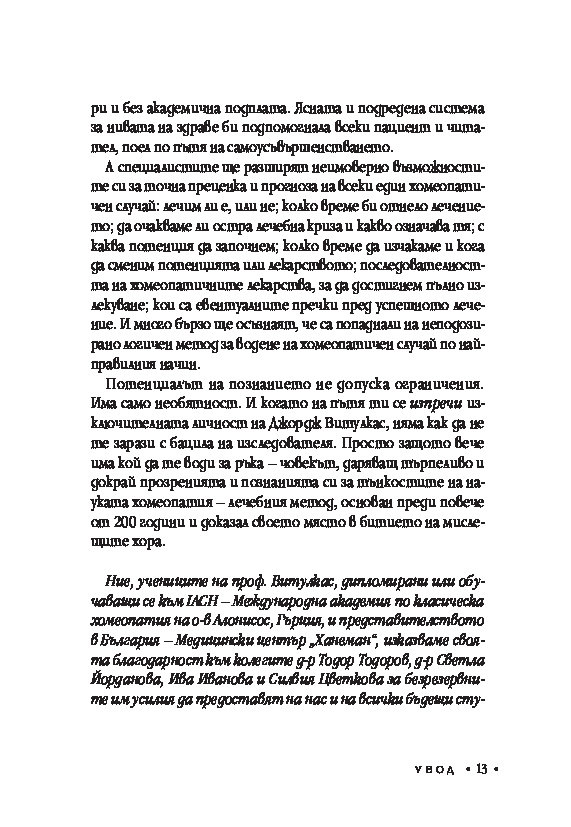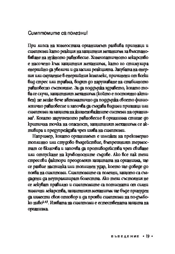 Книгата представя истински новаторска теория, основана на един изключително важен и пренебрегван компонент в хомеопатичното предписване – нивата на здраве, за която всички лекари по хомеопатия могат само да бъдат благодарни.