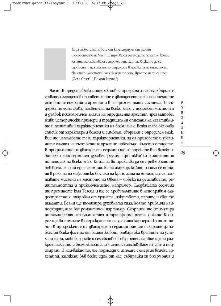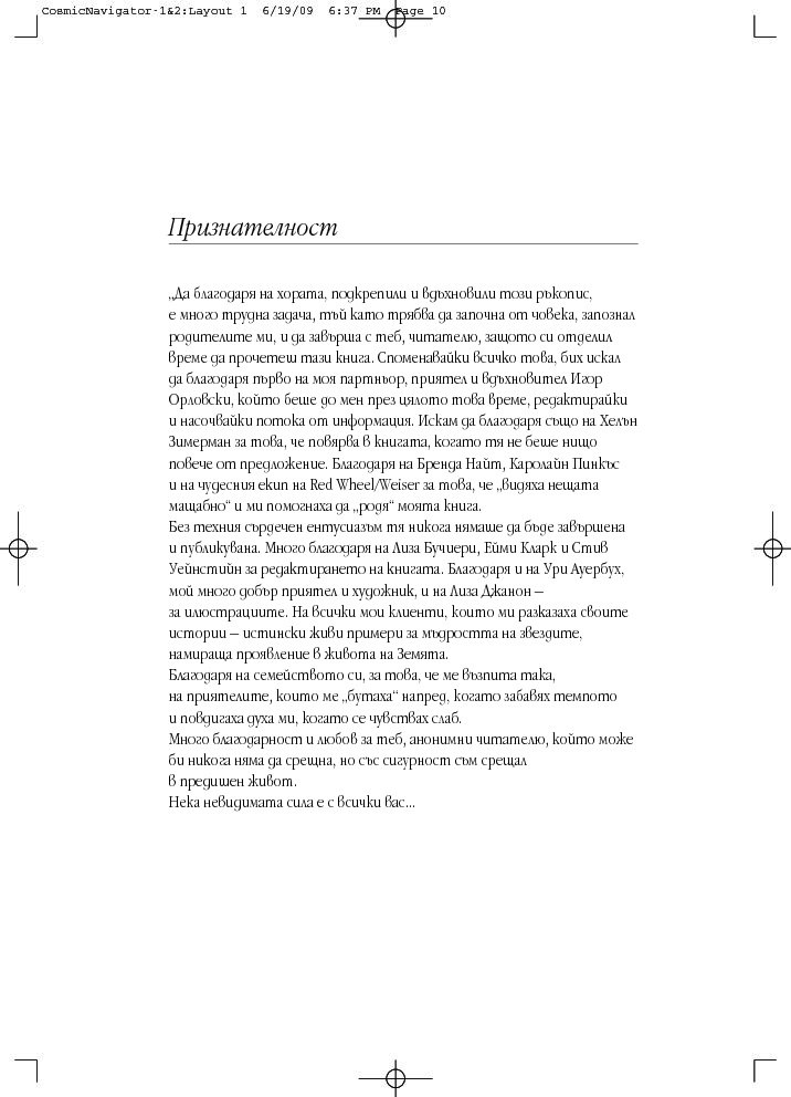 „Космически навигатор“ с лекота сърфира сред житейската синхроничност, позволява ви да овладеете космическата вселенска терминология на кабала и да усетите локалните измерения на астрологията, съсредоточена предимно в рамките на нашата слънчева система. Докато се почувствате истински космически навигатор, който умее да направлява циклите и промените на собствената си съдба.