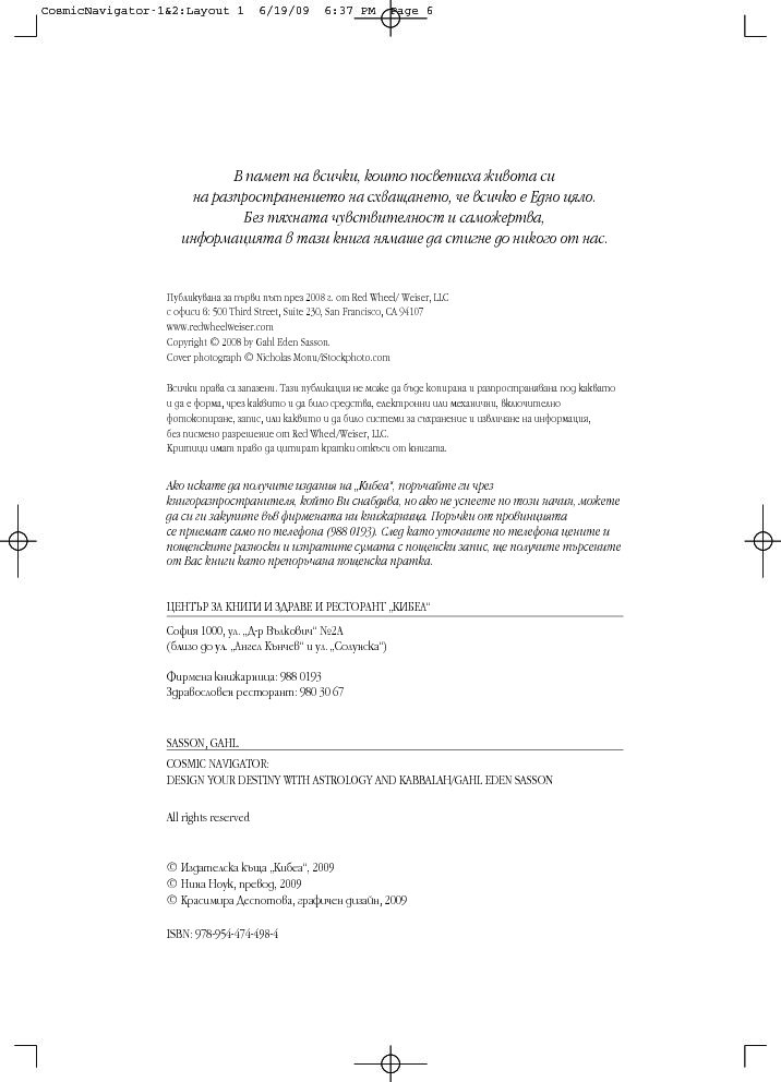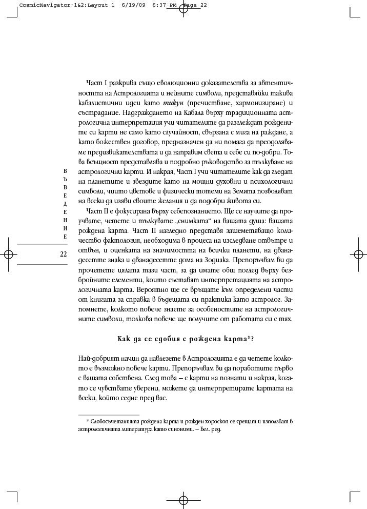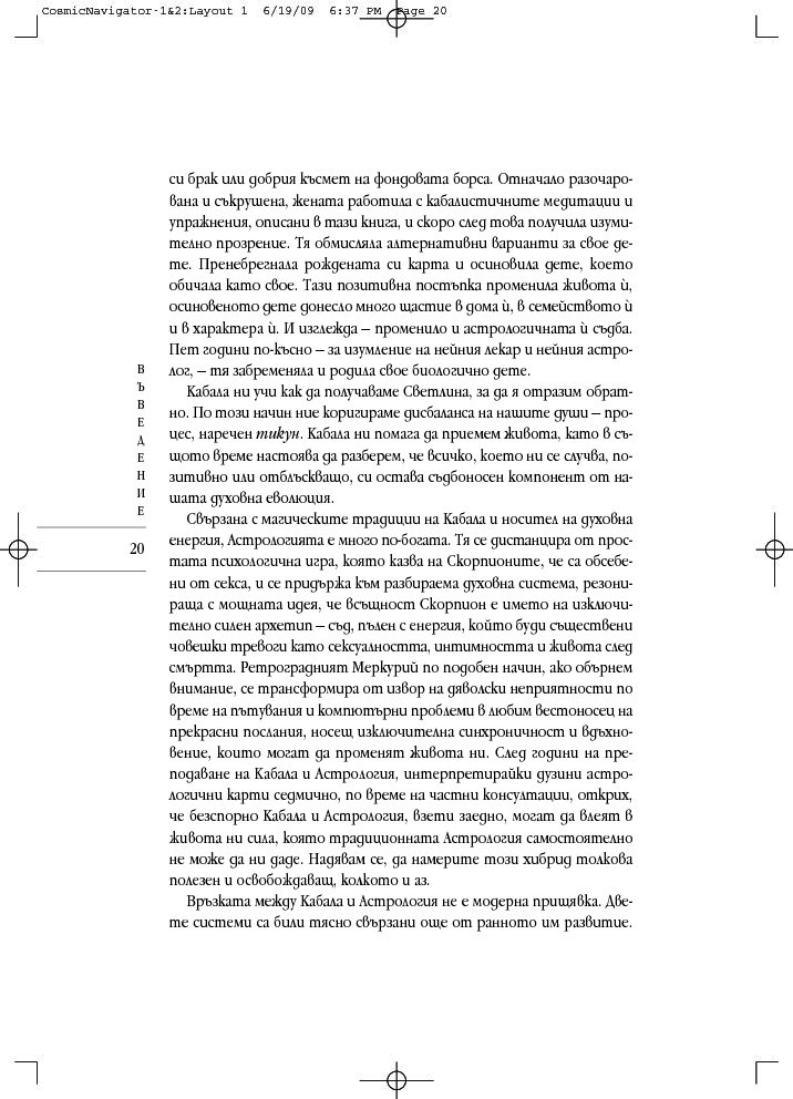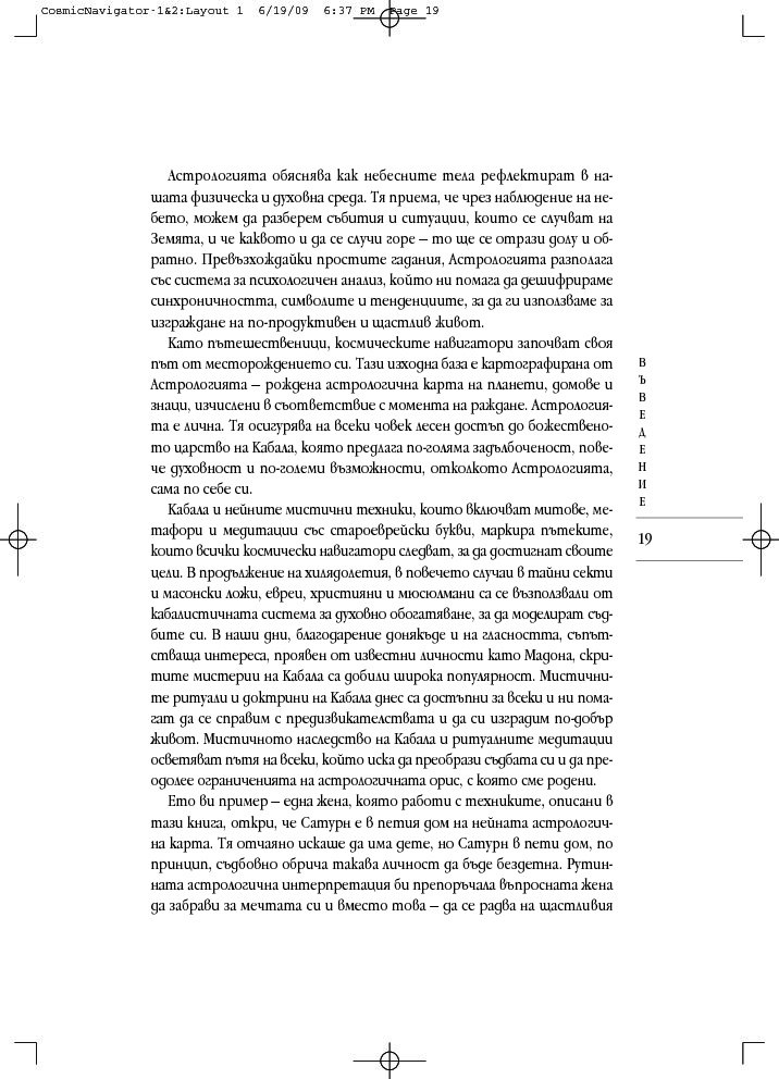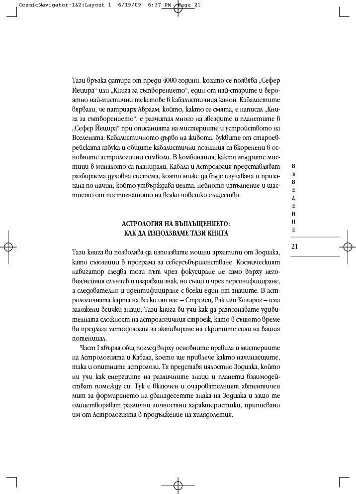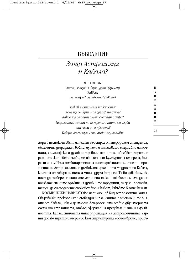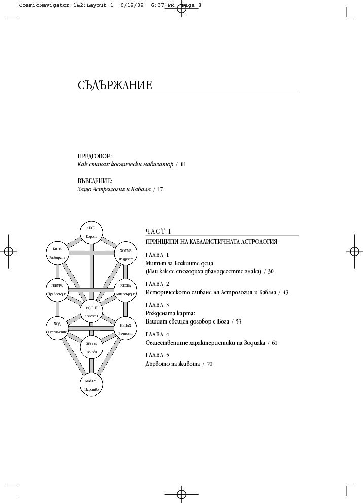 Като комбинира неостаряващите прозрения на астрологията с дълбоката архетипна мъдрост на кабала, тази книга дава отговор на много въпроси: Какъв е смисълът на живота? Кога ще открия другар по душа? Какво ще се случи с мен, след като умра? Подвластен ли съм на моята астрологична съдба или мога да я променя? Как да се спогодя с моя шеф? И още, и още...
