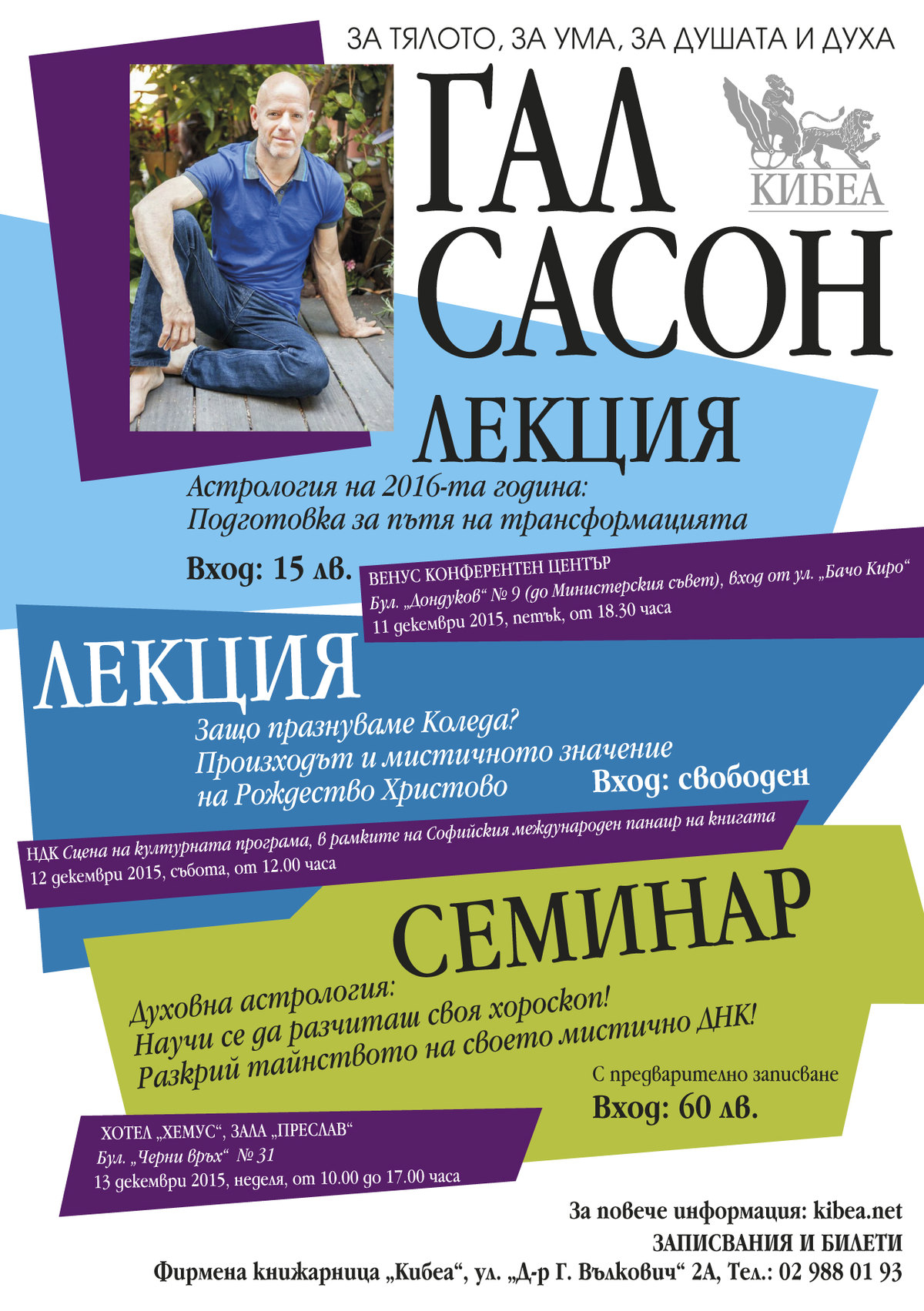 Записвания и билети: Фирмена книжарница „Кибеа“ ул. „Д-р Г. Вълкович“ 2А 02 988 01 93