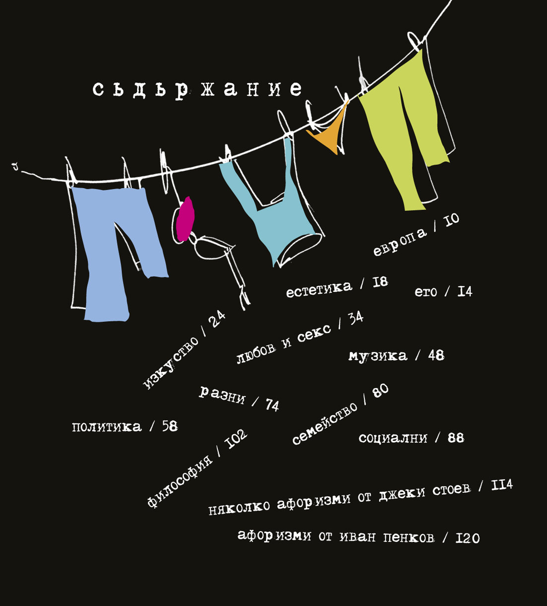 Автори на афоризмите: Джони Пенков и Иван Пенков. Автор на карикатурите и няколко словесни остроумия: Джеки Стоев