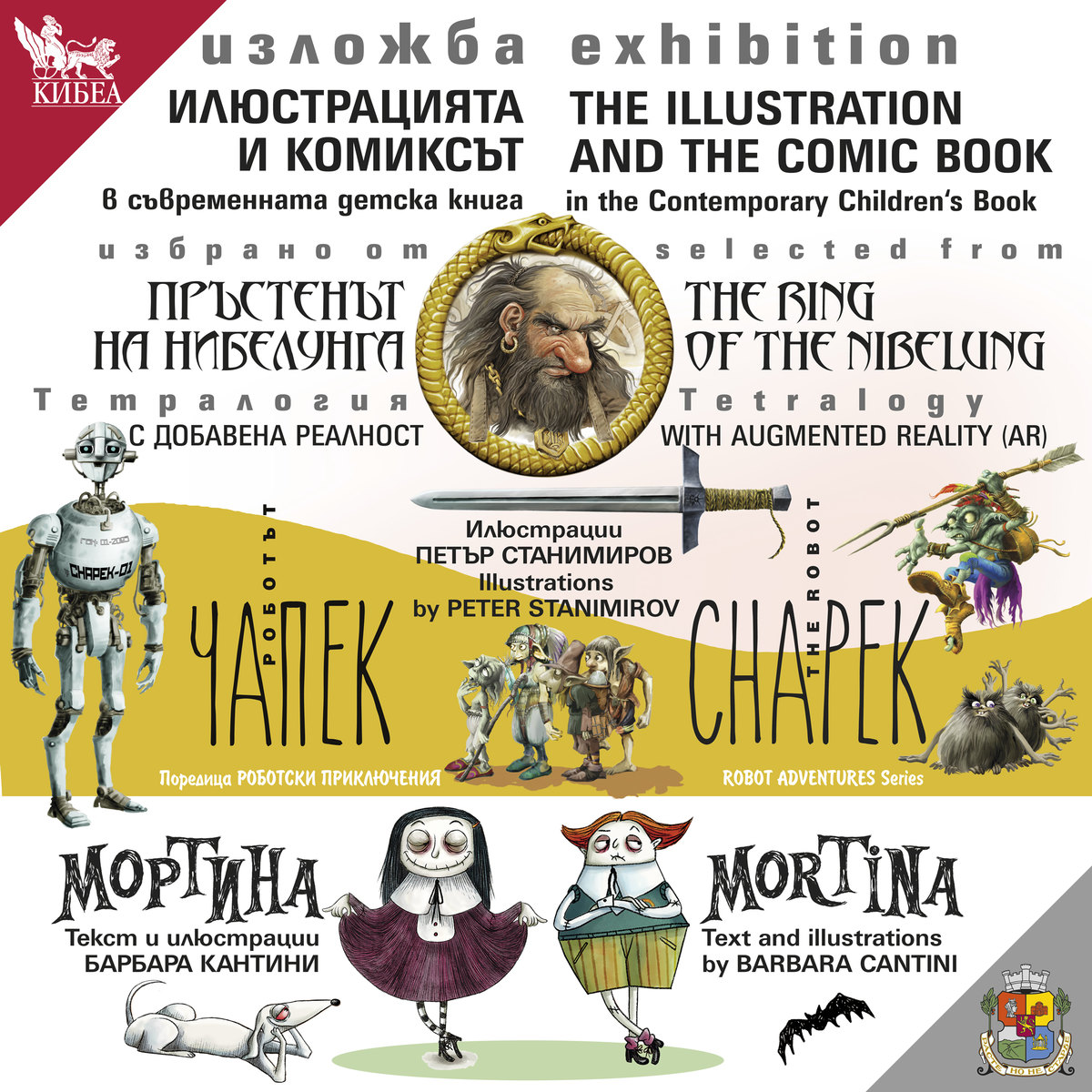 От 23 юли до 12 август Градската градина на София ще приюти суровия приключенски свят на нибелунгите, претворен в илюстрация и комикс от художника Петър Станимиров. Поредицата с роботски приключения на Чапек Първи и премеждията на симпатичната синьорина Мортина са другите два акцента от пъстрата вселена на хубавата съвременна детска книга, представена от ИК КИБЕА.