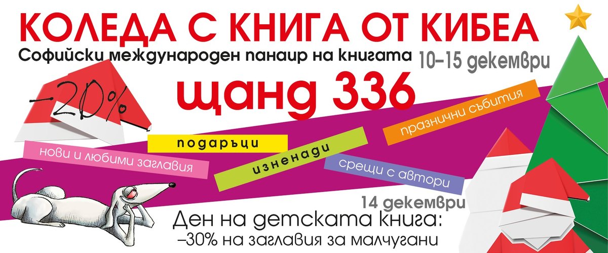Скъпи ПОчитатели, очакваме ви от 10 до 15 декември с празнично настроение, специални условия и много изненади и подаръци на щанд 336 етаж 3., НДК, или в нашата книжарница на „Хан Крум“ 15.