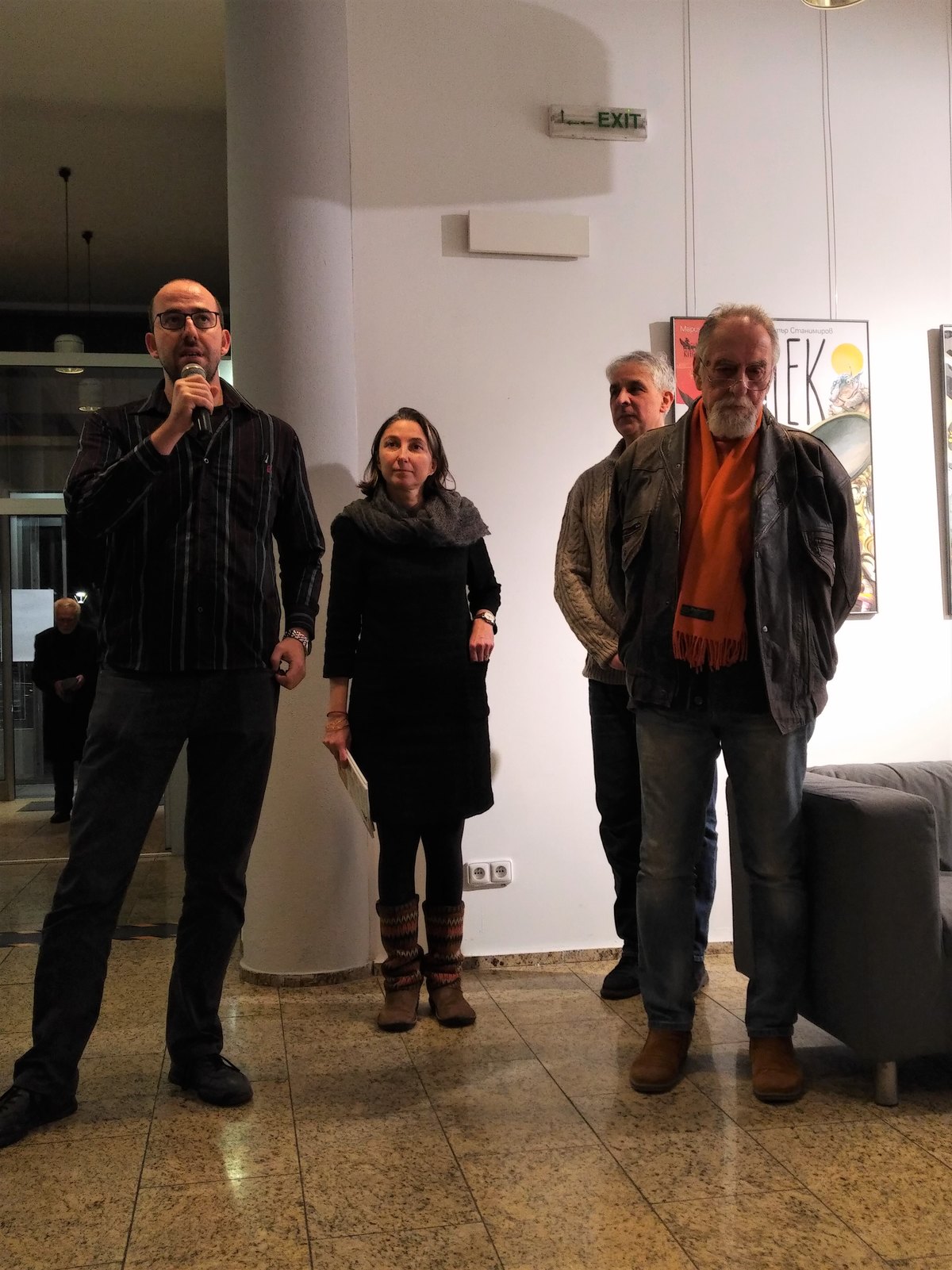 На 13 януари Чешкият център в София беше любезен домакин на важно културно събитие с два фокуса. Роботът Чапек и неговите създатели Марин Трошанов (текст), Петър Станимиров (илюстрации и комикси) и ИК КИБЕА събраха широк кръг почитатели на изложба с илюстрации и комикси, украсили първата и втората книга от космическата одисея на железния почтичовек. По-прозорливите гости на събитието отличиха и няколкото нови илюстрации, подгряващи предстоящата зрелищна поява на третото заглавие от поредицата – „Роботът Чапек и Лабиринтът на Сърдитото лигаво чудовище“.