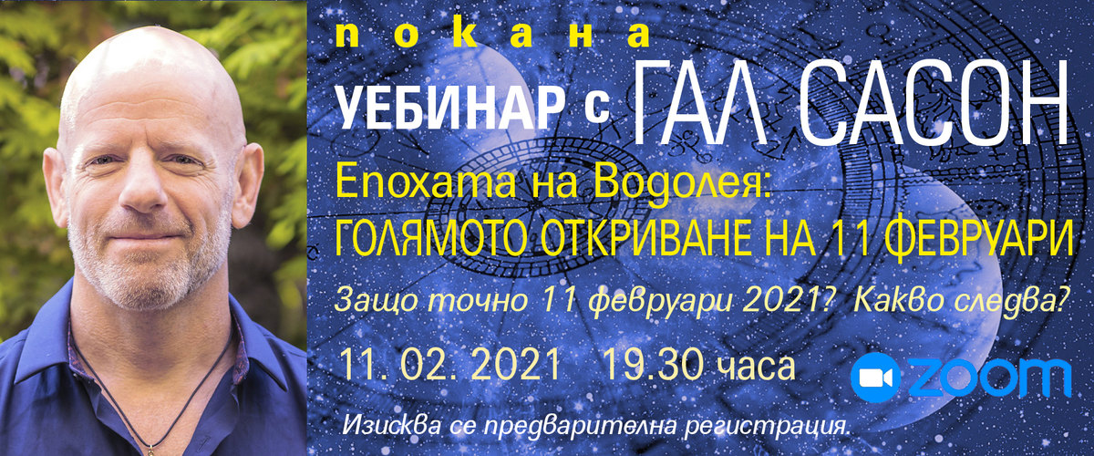 Специалният виртуален семинар на Космическия навигатор ще се състои навръх специалния 11 февруари 2021, когато за пръв път от векове Водолеят ще събере в знака си седем небесни тела. В 19.30 часа започва новолунният уебинар, на който Гал ще ни насочи как да се свържем с Епохата на Водолея и ще разберем защо астролозите трепетно очакват настъпването й от хилядолетия. Основната причина: Великият съвпад в края на 2020 отваря портите към Епохата на Водолея. Истински обаче ще пристъпим „от другата страна“, твърди Гал в книгата си „Астрологична прогноза за 2021“, с новолунието във Водолей в нощта на 11 срещу 12 февруари 2021.