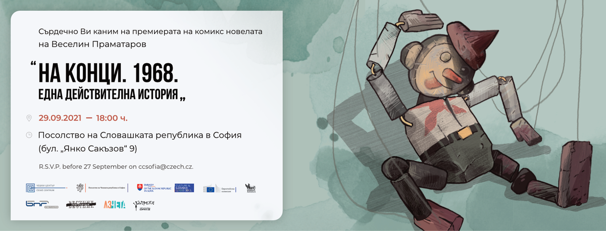 На 29 септември, сряда, от 18 часа в Посолството на Словашката република графичната новела „На конци“ с автор Веселин Праматаров ще бъде представена за пръв път. Творбата по действителни събития с реални герои ни връща към потушаването на т.нар. „Пражка пролет“ (1968 г.). Във фокуса е гражданското чувство за справедливост и неговото оцеляване в условията на тоталитарния режим.