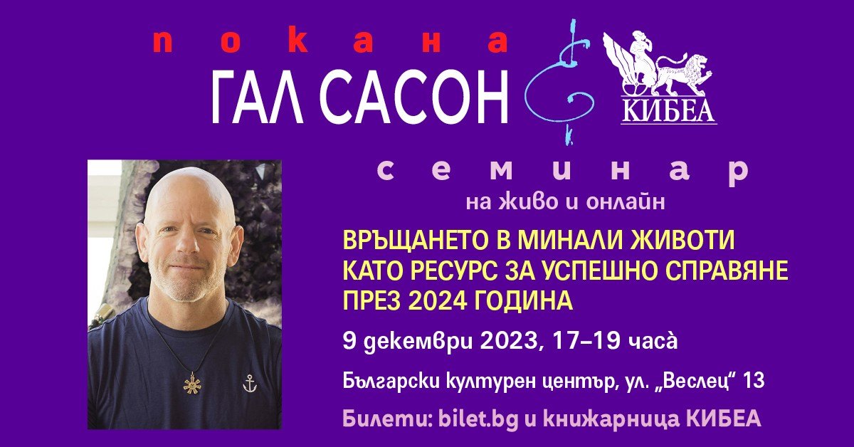 В аванс: премиера. На 3 февруари 2024 КИБЕА ще домакинства за пръв път на еднодневния уъркшоп „Семейството като констелация: Как да преодолеем наследството от нашите предци и да получим даровете на рода си“. Водещи са Гал Сасон и Елица Великова, психолог-терапевт от Института за терапия и експресивни изкуства. Очаквайте подробна информация в секция „Новини“ на www.kibea.net, на фейсбук страницата ни @Kibeabook и в нарочен брой на електронния ни бюлетин (абониране).