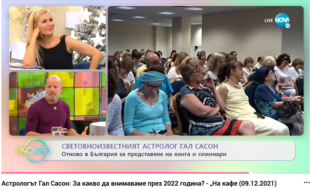 Астрологът Гал Сасон в „На кафе (09.12.2021)" Астрологът Гал Сасон: За какво да внимаваме през 2022 година? - „На кафе (09.12.2021)" https://www.vbox7.com/play:3f4ff40092